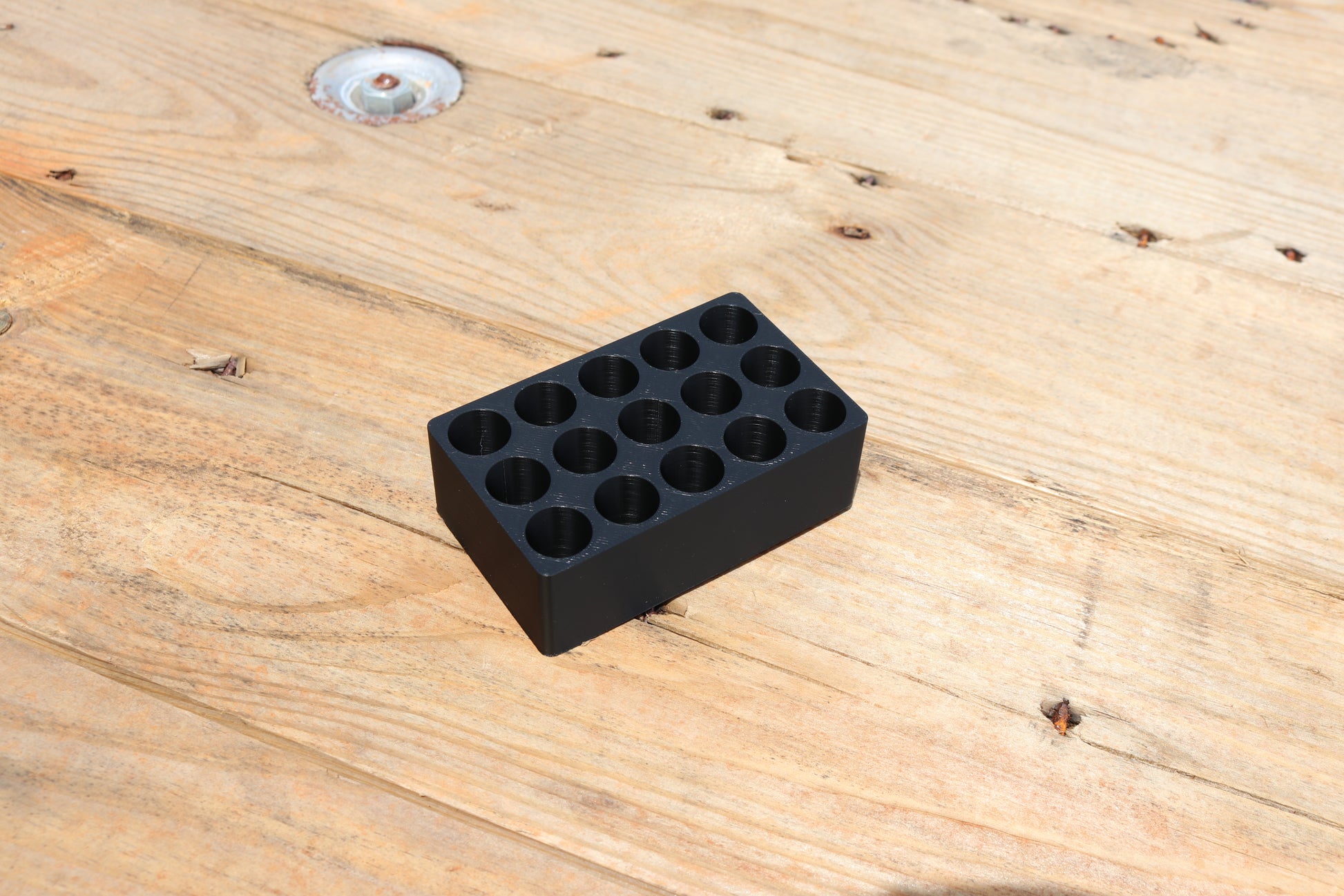 Easily store your AA Batteries with our made in the USA AA Battery Storage organizer. This organizer stores 15 AA batteries in a neat, compact tray that prevents the batteries from touching and depleting their charge. Use our discount when purchasing multiple organizers to store as many batteries as you like!